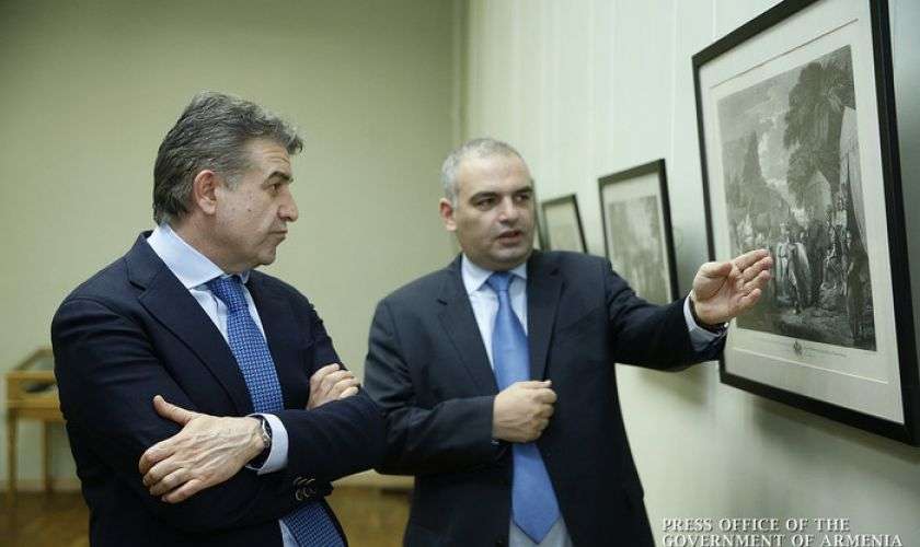 Շրջայցի ընթացքում վարչապետը ծանոթացել է «Հայոց թագավորներն ու թագուհիները XVII-XIX դդ. եվրոպական փորագրանկարներում և հայկական պաստառներում» խորագրով ցուցահանդեսի աշխատանքներին, որոնց մեջ կան հազվագյուտ և մինչ օրս անհայտ նմուշներ: Ցուցադրության մեջ ներառված են նյութեր Հայոց ցեղասպանության թանգարան-ինստիտուտի տնօրեն Հայկ Դեմոյանի, Բոստոնի Ամերիկայի հայկական թանգարանի, Արարատ-Էսքիճեան թանգարանի և Հայաստանի պատմության թանգարանի հավաքածուներից: