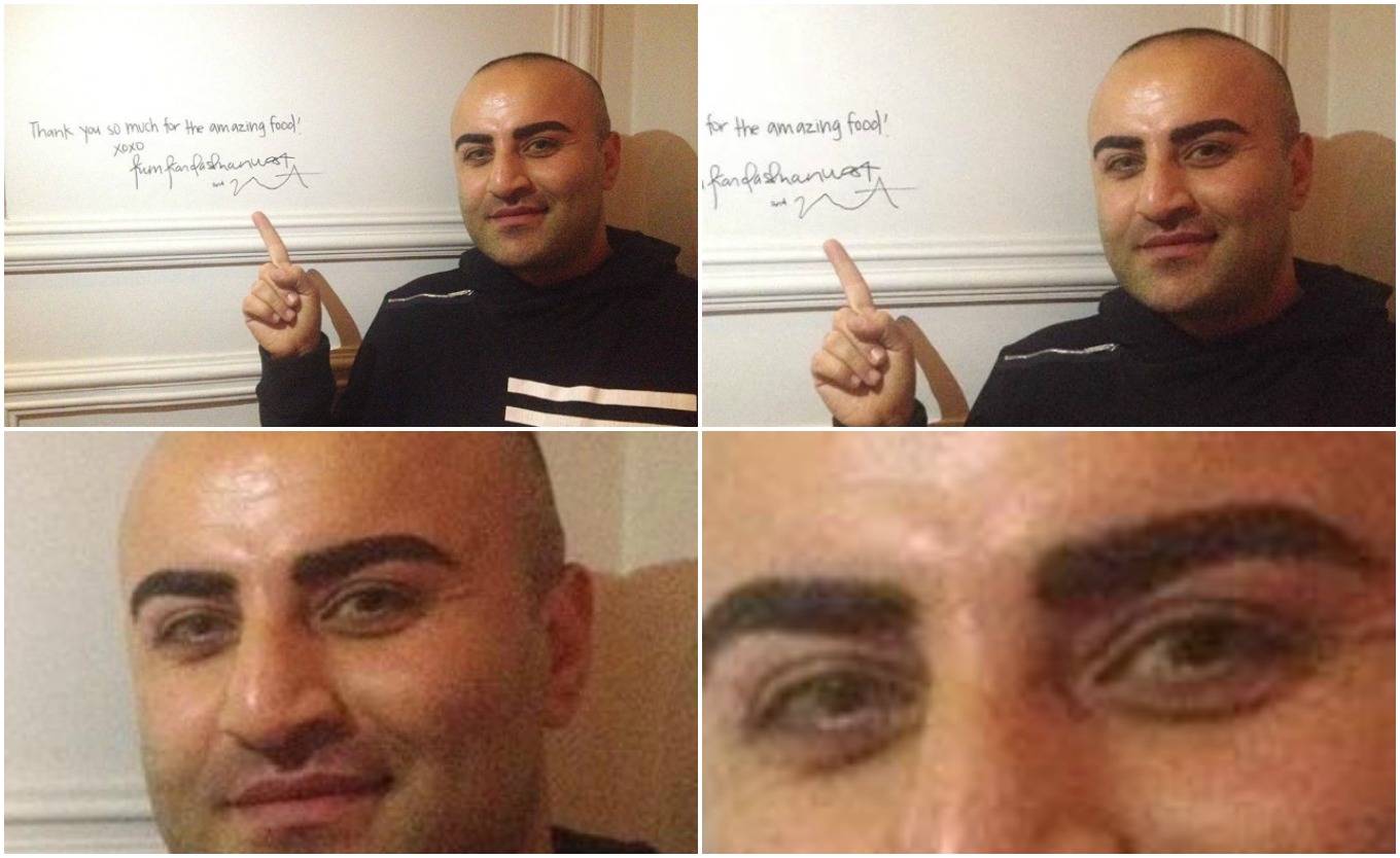 Թվում էր, թե Քարդաշյանի այցի եռուզեռում Հայաստանի ամենասուպեր-պուպեր ժամանցային բլոգերի էքսկլյուզիվ կադրը, որտեղ նա մատնացույց է անում Քիմի թողած մակագրությունը, պետք է առիթ դառնար հենց Քիմի մասին քննարկումների։ Բայց Կամոյի տաղանդը կայանում է նրանում, որ նա, անկախ իր կամքից, կարողանում է անգամ Քիմից ուշադրությունը շեղել իր պերսոնայի վրա։ Դե, եթե անկեղծ լինենք, ապա կոնկրետ այս նկարում նա շեղեց ուշադրությունը ոչ այնքան իր, որքան իր հոնքերի վրա։ Եվ ինչպես հաճախ է լինում Կամոյի դեպքում, միանգամից հայտնվեցին պարապներն ու նախանձները, ովքեր սկսեցին բավականին ծավալուն քննարկումներ այն մասին, թե արդյոք հնարավոր է, որ Կամոյի նոր հոնքերը շահովի են, կամ էլ ինչ միջոցներով կարելի է դրանք ջնջել։ Որոշ պարապներ ու նախանձներ, առավելապես՝ իգական սեռի, բավականին նախանձով էին արտահայտվում այդ որակի ու գեղագիտության տատուաժի մասին։ Սակայն դոմինանտ կարծիքն այն էր, որ մեր պապերը նման հոնքեր չեն ունեցել, իսկ եթե ինչ-որ մեկի պապն ունենար տատուաժ արած հոնքեր, մյուսներիս պապերը դրան անդազահան կանեին ու կզրկեին պապ դառնալու բոլոր հեռանկարներից ու տեխնիկական հնարավորություններից։Կամոյի մարտական կոչը և արջի մեմը