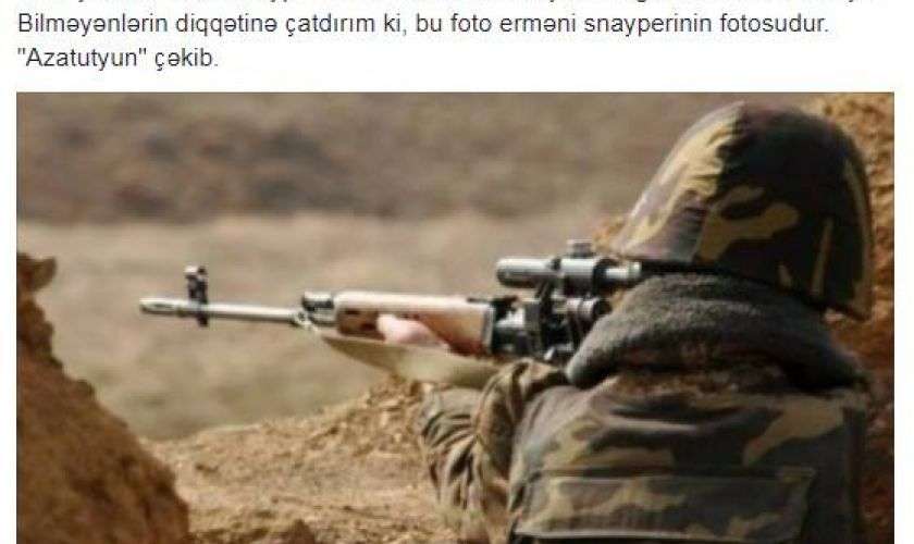 Սոցիալական ցանցերի ադրբեջանցի օգտատերերը գրում են, որ «Նախնական զինվորական պատրաստություն» առարկայի 10-րդ դասարանի դասագրքերում Ադրբեջանի զինծառայողի լուսանկարի փոխարեն Հայաստանի զինված ուժերի դիպուկահարներից մեկի լուսանկարն է հրապարակվել։