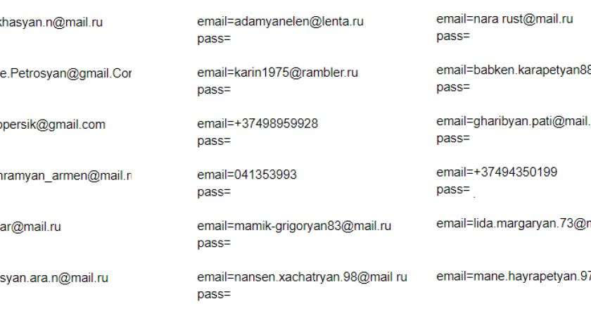 ՈՒՇԱԴՐՈՒԹՅՈՒՆ․ սա հայկական ֆեյսբուքյան օգտատերերն են, որոնց թիրախավորել են ադրբեջանական հաքերները վերջին 1-2 ամսվա ընթացքում և, մեծ հավանականությամբ, կարողացել են գողանալ գաղտնաբառը։ Ես գաղտնաբառերը ջնջել եմ, թողել եմ մենակ մարդկանց լոգինները։ Կախված մարդուց՝ դա կա՛մ մեյլն է, կա՛մ հեռախոսը, կա՛մ ֆեյսի լոգինը։ Հարևանները հայտարարում են, որ կոտրել են 4 հազար հոգու։ Իրականում, մոտ հազար երեք հարյուր մարդու տվյալ է։ Շատերին, հավանաբար, չեն էլ կարողացել կոտրել, քանի որ ներկայացված գաղտնաբառերը, օրինակ, կրկնում են լոգինը, կամ շատ կարճ են, ինչը Ֆեյսբուքը պարզապես թույլ չի տալիս։ Սակայն, ես մի շարք լոգին-գաղտնաբառ զույգեր ստուգել եմ, և դրանք աշխատում են։ Ավելին՝ այդ մարդիկ տեղյակ էլ չեն, որ իրենց կոտրել են, քանի որ հաքերները դեռ ձեռք չեն տվել այդ պրոֆիլները։ Այնպես որ, անպայման ստուգվեք, համոզվեք, որ դուք կամ ձեր ընկերներն այստեղ չկաք։