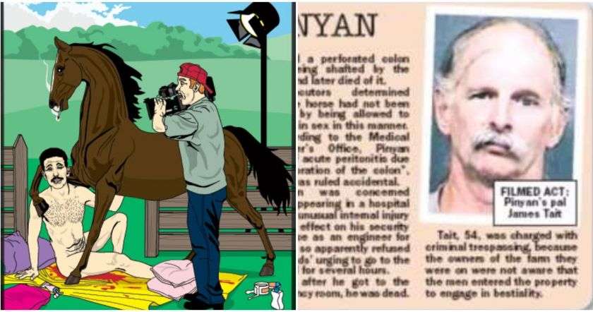 2005 թվականին 45-ամյա Քենեթ Փինիանը մահացել է ձիու հետ սեռական ակտի ընթացքում ստացած վնասվածքների պատճառով։ Այս դեպքը պատահել է Վաշինգտոն քաղաքի Քինգ շրջանում գտնվող ֆերմաներից մեկում։