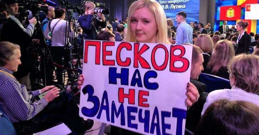 Այս ասուլիսին Պեսկովի և Պուտինի ուշադրությունը գրավելու հարցն ավելի բարդ է, քանի որ, ի տարբերություն նախկին տարիների, լրագրողներն իրավունք չունեն մեծ պլակատներով ներկայանալու. դրանք խանգարում են տեսախցիկների աշխատանքին: Կրեատիվը պետք է տեղավորել A4 չափի թղթի վրա կամ էլ շատ վառ կերպարով ներկայանալ։ Օրինակ՝ լրագրող կա, ով Ձմեռ պապիկի շորերով է ասուլիսին ներկայացել։