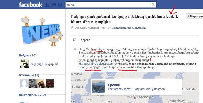 Գնալով անգրագիտությունը ու հայերենի տարրական ուղղագրության չիմացությունը ավելանում է մեր հասարակության մեջ: Թող ինձ ներեն բոլոր այն ընկերներս, ովքեր խնդրել են այս ''անգրագետ'' մրցույթում լայքեմ իրենց լուսանկարը, բայց տգիտությունն էլ չափ ու սահման պետք է ունենա....գոնե մրցույթի նկարագրությունը մի քիչ գրագետ գրեին, 1 նախադասության մեջ 3 սխալ, անիմաստ բառերի կույտ ու էլ չասեմ, որ այս փայլուն մտքի հեղինակը երևի ընդհանրապես անծանոթ է կետադրական նշան հասկացողությանը....Ու բլոգերները իրենց նկարները ուղարկում են այս մրցույթին??? Ի դեպ պարզվում է երգչուհի Էմմին էլ կայքի կարիք ունի, նա նույնպես իր ՀԵՂԻՆԱԿԱՅԻՆ լուսանկարը ուղարկել է մրցույթին.....:ՃՃՃՃ