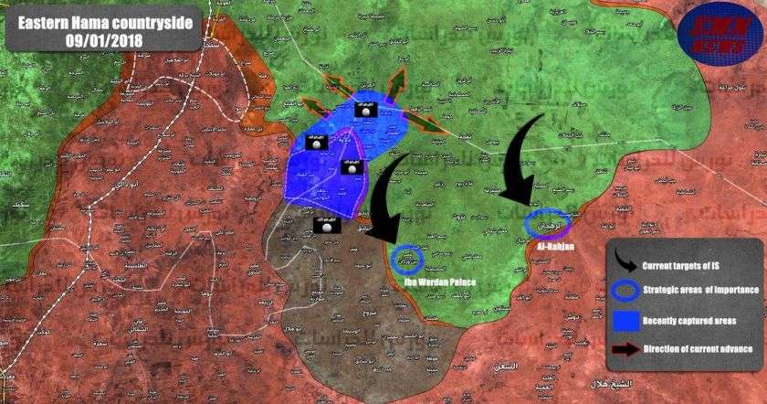 Հունվարի 7-8-ին Իսլամական պետության զինյալները Սիրիայի Համմա նահանգի հյուսիսում ընդդիմադիր ուժերից գրավել են մի քանի բնակավայրեր (ստորև ներկայացված քարտեզում ցուցադրվում է այդ արեալը):