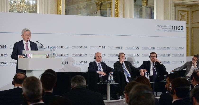 «Եվրասիա խմբի» նախագահ և հիմնադիր Յան Բրեմերը նախագահ Սերժ Սարգսյանին հարց է տվել 2013 թվականին չստորագրված ասոցացման համաձայնագրի մասով, որին ի պատասխան Սերժ Սարգսյանն ասել է, որ շատ տարօրինակ, երբ Յան Բրեմերը այդպիսի հարցադրում է անում։ Նախագահի խոսքով Հայաստանը բոլորի հետ անկեղծ է եղել, իսկ մեզ առաջարկվել է կա՛մ կա՛մ-ի քաղաքականությունը, բայց մենք որդեգրեցինք և՛ և՛-ի քաղաքականությունը, որը Եվրոպան չընդունեց։ Սարգսյանը հիշեցրել է նաև Ուկրաինայի հետ ստորագրված համաձայնագիրը, իսկ Հայաստանի առաջարկած նմանատիպ փաստաթուղթը մերժվել է։