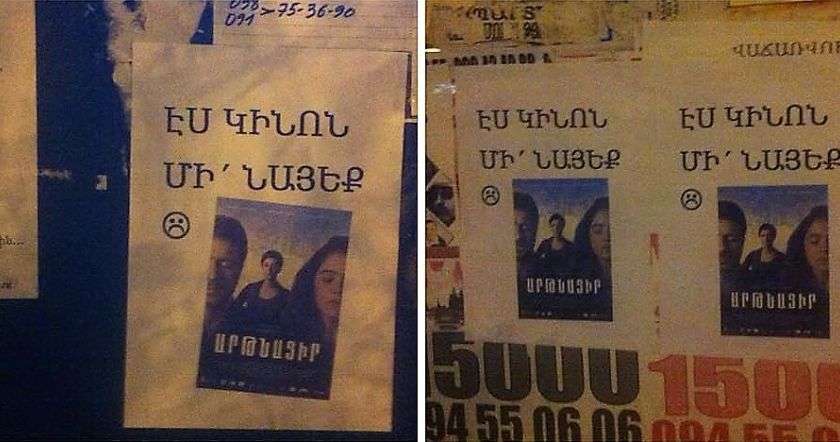 «Արթնացիր» ֆիլմի դեմ ինչ-որ արշավ են սկսել, չեմ հասկանում՝ ինչու։ Նախ՝ ՖԲ-ում, հիմա՝ գովազդային վահանակներին։ Ֆիլմը չեք սիրում, հարց չկա։ Ռեժիսորին չեք սիրում, կրկին հարց չկա, բայց գնալ կինոթատրոն, ֆլայերները վերցնել ու քաղաքում դրանք փակցնե՞լ... Ասենք թե՝ չնայեցին, փակցնողին ի՞նչ, վատություն անելուց հաճույք են ստանո՞ւմ։