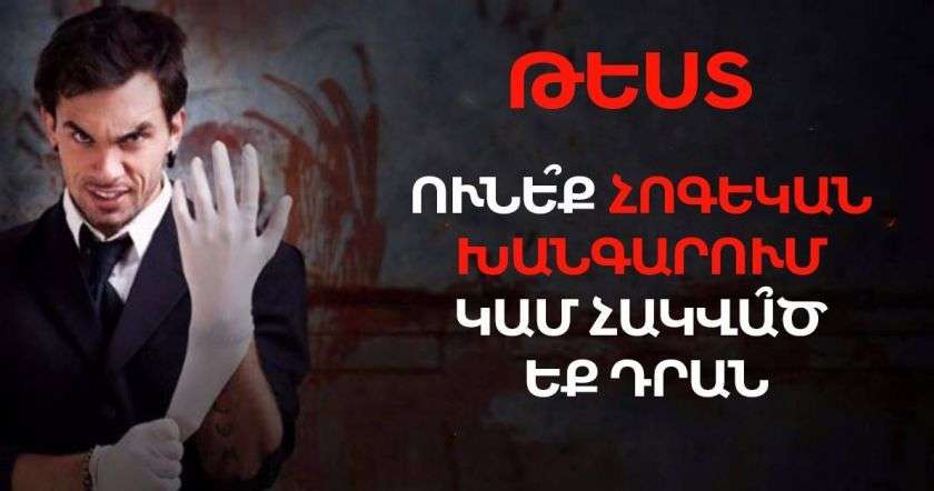 Այս թեստը կբացահայտի՝ արդյոք ունե՞ք հոգեկան խանգարում կամ հակվա՞ծ եք դրան: Կայքում տեղ գտած մտքերն ու տեսակետները հեղինակի սեփականությունն են և կարող են չհամընկնել BlogNews.am-ի խմբագրության տեսակետների հետ: print Տպել
