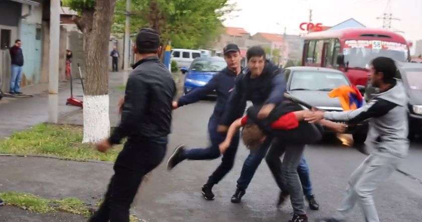 Քիչ առաջ Էրեբունիում` Այվազովսկու փողոցում, քաղաքացիական հագուստով անձինք մահակով ծեծի են ենթարկել անչափահաս ցուցարարներին: Հասցրի վիդեո անեմ։