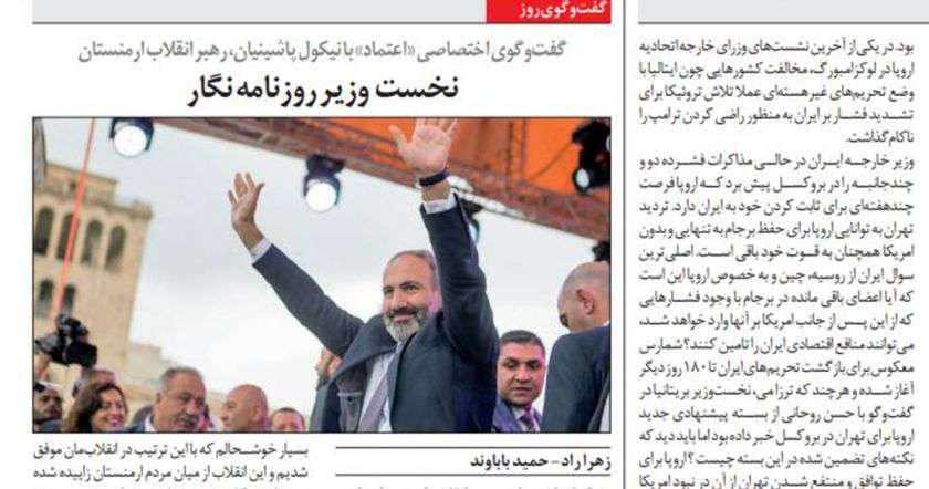 Պարսկերեն «Էթեմադ» օրաթերթը «Լրագրող վարչապետը» վերտառությամբ հոդված է հրապարակել՝ ներկայացնելով ՀՀ վարչապետ Նիկոլ Փաշինյանի հարցազրույցը, որտեղ անդրադարձ է կատարվել Իրան-Հայաստան հարաբերություններին, հայաստանյան զարգացումներին շարժման առաջնորդի կողմից արտաքին միջամտության բացառմանը, շեշտվել դրա անթույլատրելիությունը, կառավարության ձևավորմանը, քաղաքացիների սպասելիքներին...