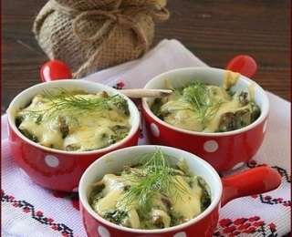 Սունկը լվանալ և մեծ-մեծ կտրտել, սպանախը նույնպես լվանալ, կտրտել: Տապակի մեջ բուսայուղ լցնել և տապակել սունկը մանր կտրտած սխտորով, ավելացնել սպանախը, թթվասերը, աղը, պղպեղը և 5 ր. տապակել: Ժուլյենի ամանների մեջ լցնել սնկի խառնուրդը, վրան քերած պանիր ցանել, եփել նախապես 200 աստիճան տաքացված ջեռոցում մոտ 10 ր.: Քերած պանիր կարելի է ավելացնել նաև սնկի խառնուրդին:
