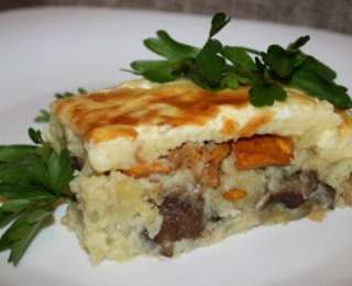 Սունկը կտրատել: Սոխը օղակ-օղակ անել, կիսել: Միասին տապակել կարագի մի մասով, համեմել աղով և պղպեղով: Հացի շերտերը մտցնել ձվի մեջ և տապակել: Թավայի մեջ բովել ալյուրը, կարագ ավելացնել, կաթ լցնել և խառնել մինչև համասեռ զանգված ստացվի: Եփել հինգ րոպե: Հովացնել, խառնել սնկին, վրան լցնել հարած ձուն: Տապակած հացը շարել տապակի մեջ, կարելի է փայլաթիթեղ դնել կամ պարզապես յուղել տապակը: Հացի վրա տեղադրել սնկի զանգվածը: Վրան ցանել քերած պանիր և եփել մինչև կարմիր կեղև ստացվի: