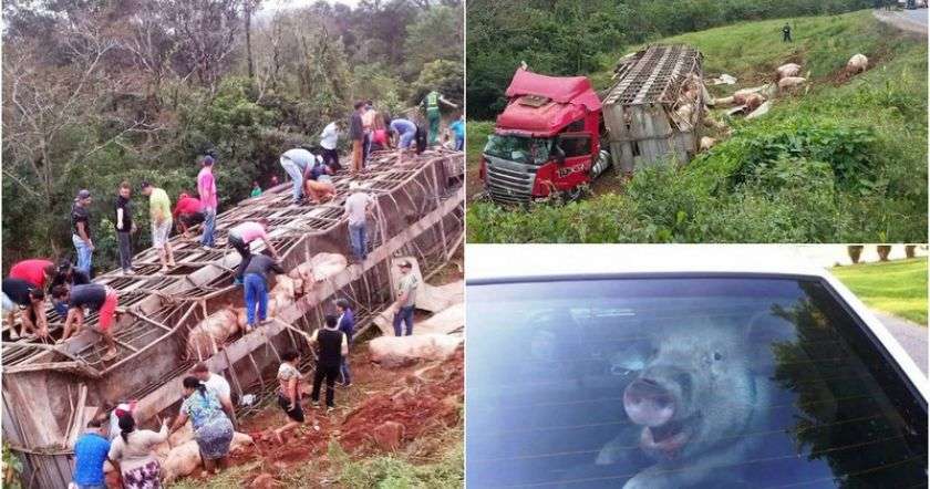 Բրազիլիայում վերջերս շրջվել է բեռնատարը, որը տեղափոխում էր 120 խոզ: Կենդանիներին տանում էին երկրի հարավային հատվածում գտնվող շուկա: Վարորդը չի տուժել, բայց մի քանի տասնյակ խոզ սատկել է: Անցորդ մեքենաների վարորդները խոզերին գողանալու և յուրացնելու առիթը բաց չեն թողել: Ընդհանուր առմամբ, կենդանիներն արժեին 10.000 դոլար: