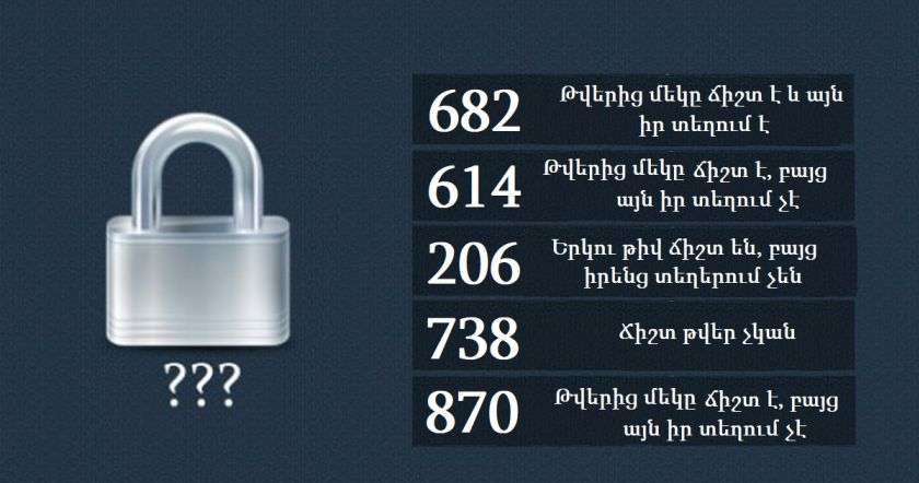 Կարո՞ղ եք գտնել ճիշտ կոդը՝ ելնելով նախորդների թույլ տված սխալներից: