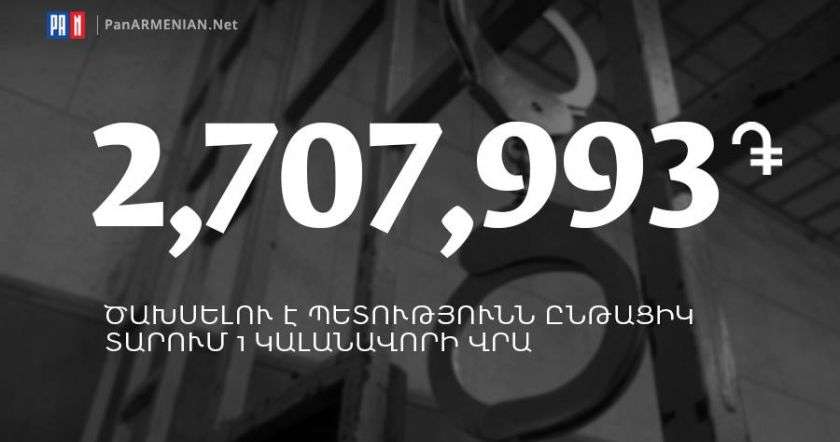 Սեպտեմբերի 1-ի դրությամբ դրությամբ ՀՀ ԱՆ ենթակայության տակ գտնվող ՔԿՀ-ներում պահվում է 3065 կալանավորված անձ և դատապարտյալ: Ստացվում է, որ պետությունը ընթացիկ տարում մեկ կալանավորի կամ դատապարտյալի համար ծախսելու է 2,707,993 դրամ` ներառյալ բանտային համակարգը պահելու ծախսերը: Հունվար-օգոստոսին մեկ կալանավորի վրա արդեն իսկ ծախսվել է 1,468,189 դրամ: