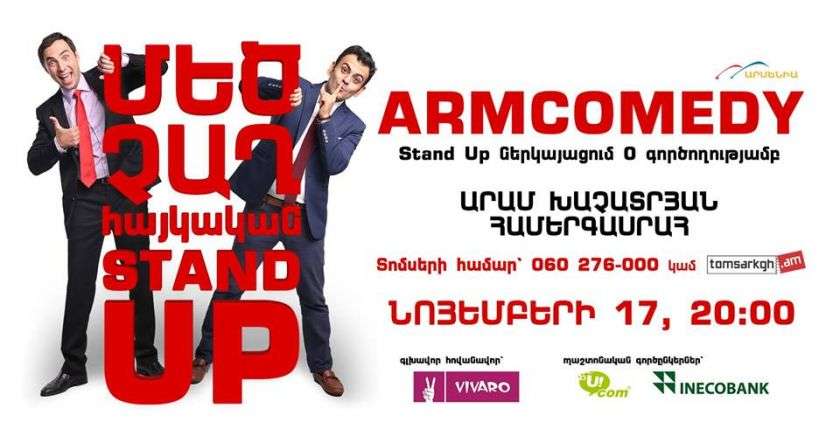 Ծիծաղ, խինդ, ուրախություն, սեր ու համերաշխություն. ArmComedy-ի տղաներն աշնանային հետաքրքիր ու անակնկալներով լի երեկո են նախապատրասում։ «Մեծ, չաղ, հայկական Stand up»-ը` 0 գործողությամբ, տեղի կունենա նոյեմբերի 17-ին Արամ Խաչատրյան համերգասրահում։ Մինչ այս Նարեկն ու Սերգեյն անդադար փորձեր են անում, փոփոխում սցենարն ու բեմադրությունները։ Ներկայացումից առաջ նրանք հետաքրքիր մանրամասներ են վստահել BlogNews.am-ին։