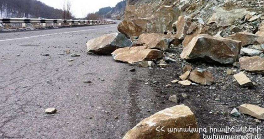 Փրկարարները քարերը հեռացրել են ճանապարհից: