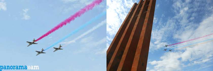 Երևանյան երկնքում այսօր ինքնաթիռներ էին ճախրում ու երկնքում թողնում էին մեր եռագույնի հետքը, որը քաղաքի բոլոր ծայրերից կարելի էր նկատել: Անհաջող պատահականությամբ մի քանի անորակ ֆոտոլրագրողի՝ լույսը սխալ ընկալելու և երկինքը սխալ պրիզմայից նկարելու պատճառով ինքնաթիռներից մեկի թողած ծուխը չափազանց բաց էր ստացվել ու թվում էր, թե այն ոչ թե նարնջագույն ծուխ է արձակում, այլ սպիտակ: Սա կրկնում եմ, ուղիղ արևի վրա ֆոտոխցիկը պահելու արդյունք է, որը, ինչ արած, երբեմն պատահում է անգրագետ ֆոտոլրագրողների պարագայում: