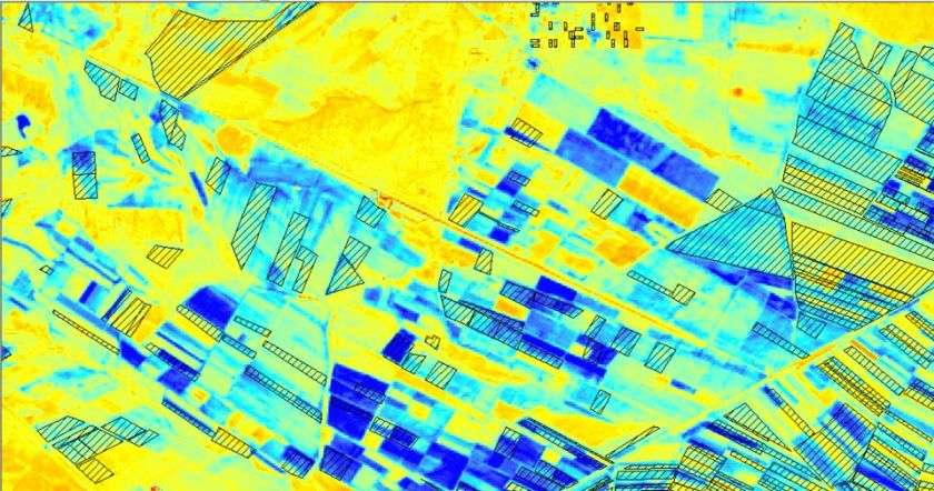 Եվ ահա ձեզ եմ ներկայացնում փաստացի ոռոգվող հողատարածքների քարտեզի մի հատված, որը ստացվել է արբանյակային պատկերների վերլուծության միջոցով։ Սա իմ գրասենյակի և մի մասնավոր հետազոտողի համագործակցության արդյունքն է: