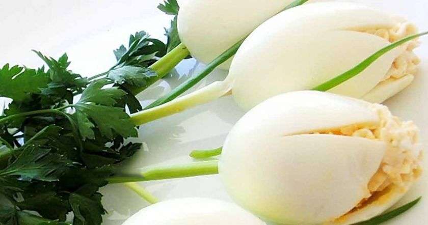 1. Ձվերը պինդ խաշել, մաքրել, սուր մասից խաչաձև կտրել և զգուշությամբ հանել դեղնուցները։
