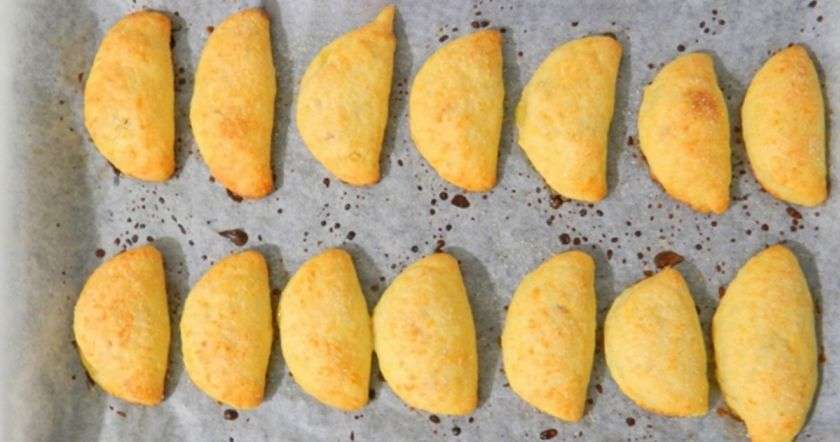 Փոքրիկ խմորաշերտերի մի կողմում լցնում ենք միջուկը։