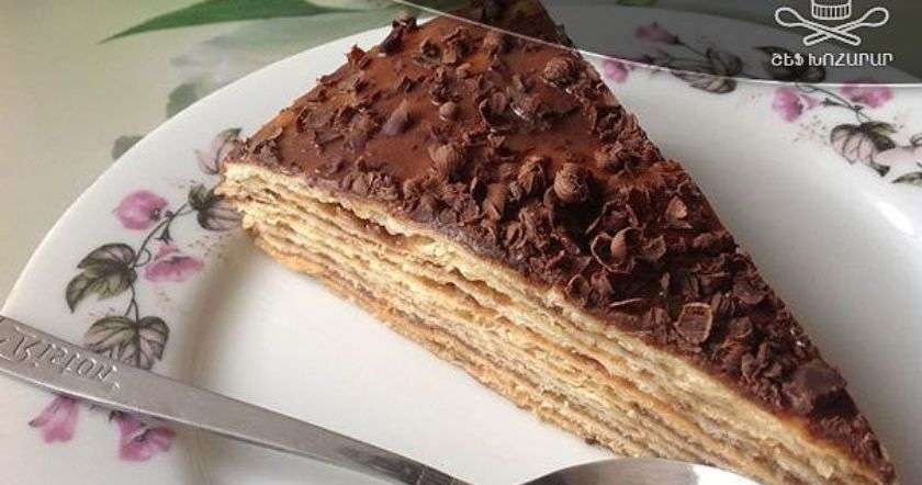 Հանում ենք առաջին շերտը, և քանի դեռ տաք է, վրան կրեմ ենք քսում, այնուհետև նույնը անում ենք մնացած շերտերի հետ։