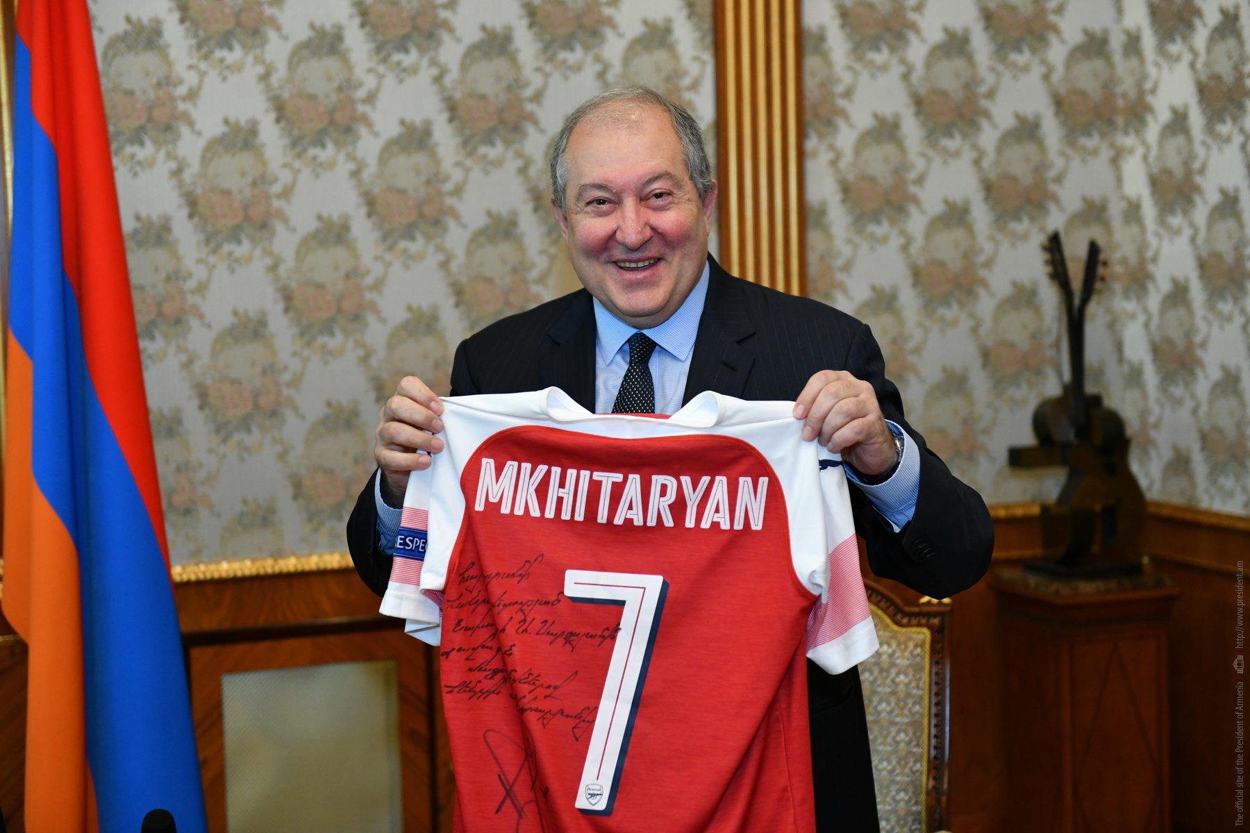 Այնուհետև Հանրապետության նախագահն ու Հայաստանի հավաքականի ավագը խոսել են ֆուտբոլի զարգացման ընդհանուր միտումներից, հավաքականի խաղից ու նրա առջև դրված խնդիրներից, Անգլիայի առաջնությունից ու Լոնդոնի «Արսենալ»-ից: Նախագահ Սարգսյանը նշել է, որ ինքը ֆուտբոլի երկրպագու է դեռ մանկության տարիներից: Նա պատմել է ֆուտբոլի ու Երևանի «Արարատ»-ի լեգենդար ֆուտբոլիստների հետ կապված իր հիշողություններից: «Երկար տարիների իմ ֆուտբոլային սերը մեծ առկայծումներ, ուրախության օրեր է ունեցել: Այդ օրերը 1973-1975 թվականներն էին,-ասել է նախագահը: - Հիմա շատերը երկրպագում են «Արսենալ»-ին, բայց դրա պատճառը դու ես»: Նա շնորհակալություն է հայտնել Հենրիխ Մխիթարյանին՝ հայկական ֆուտբոլին և ազգային հավաքականին մատուցած ծառայությունների համար և հաջողություն մաղթել: Հենրիխ Մխիթարյանն ասել է, որ ամեն ինչ անելու է թե՛ հավաքականի կազմում, թե՛ անգլիական Պրեմիեր լիգայում բարձր մակարդակով հանդես գալու համար: