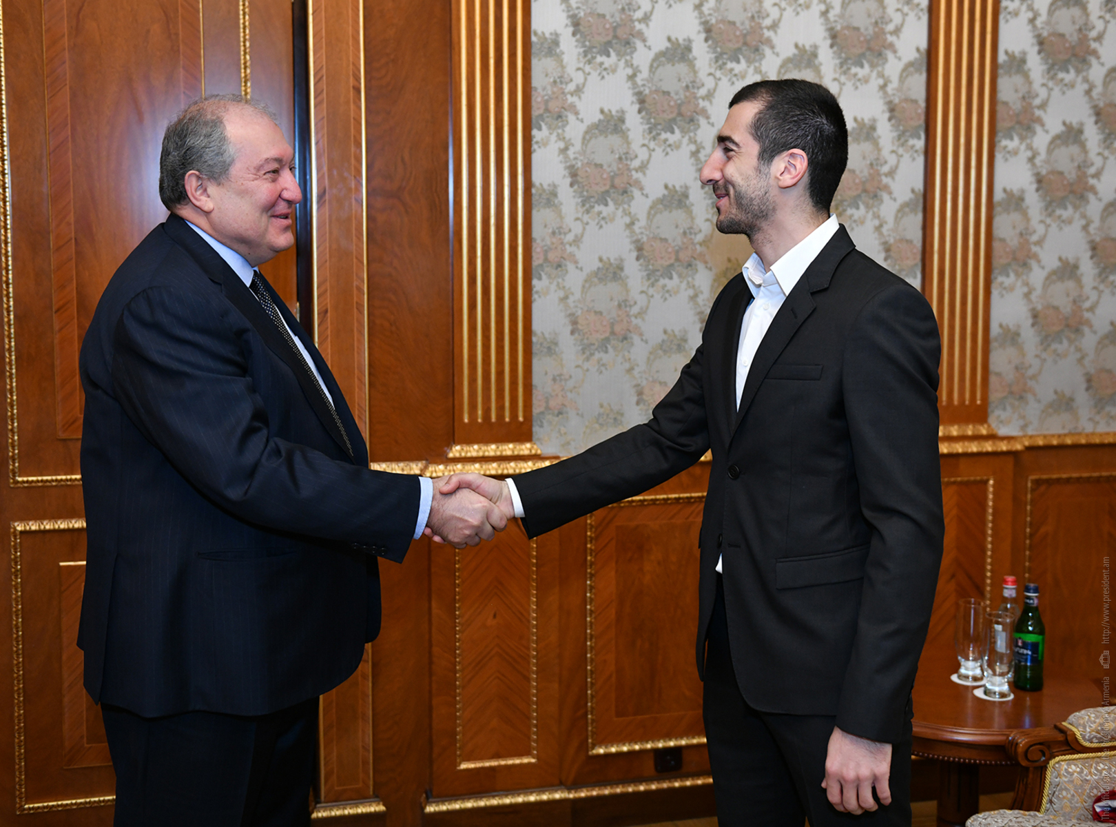 Հանրապետության նախագահ Արմեն Սարգսյանն այսօր հյուրընկալել է Հայաստանի ֆուտբոլի ազգային հավաքականի ավագ, Լոնդոնի «Արսենալ» թիմի կիսապաշտպան Հենրիխ Մխիթարյանին: Հանդիպմանը ներկա է եղել նաև գյումրեցի դպրոցական Մանվել Լոռեցյանը:
