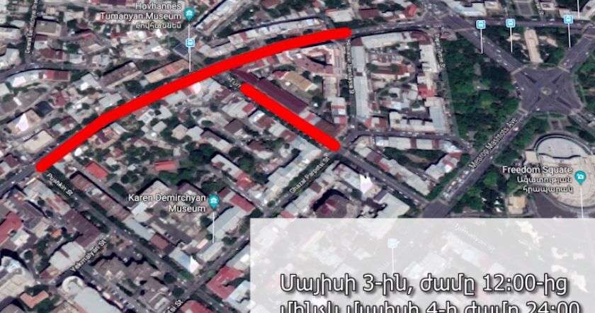 Բացի այդ՝ մայիսի 3-ին՝ ժամը 08.00-ից Սարյան և Մոսկովյան փողոցներում՝ Սարյան-Պուշկինի փողոցների խաչմերուկից մինչև Մոսկովյան-Սպենդիարյան փողոցների խաչմերուկ արգելվելու է տրանսպորտային միջոցների կայանումը: