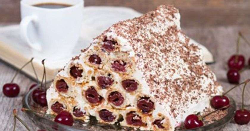 Ապա դնում ենք քամված բալը յուրաքանչյուր շերտի երկայնքով և ամրացնում խմորի