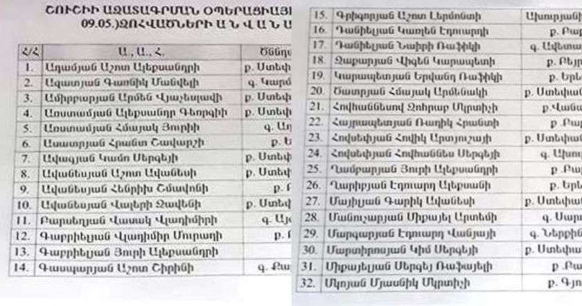 Անուն առ անուն հիշենք բոլոր այն քաջորդիներին, որոնք իրենց կյանքի գնով կերտեցին Շուշիի ազատագրման այս տոնական օրը և հպարտության զգացում պարգևեցին ողջ հայությանը։ Ձեր գործն անմահ է։ Խոնարհումս ձեր հավերժական հիշատակին։