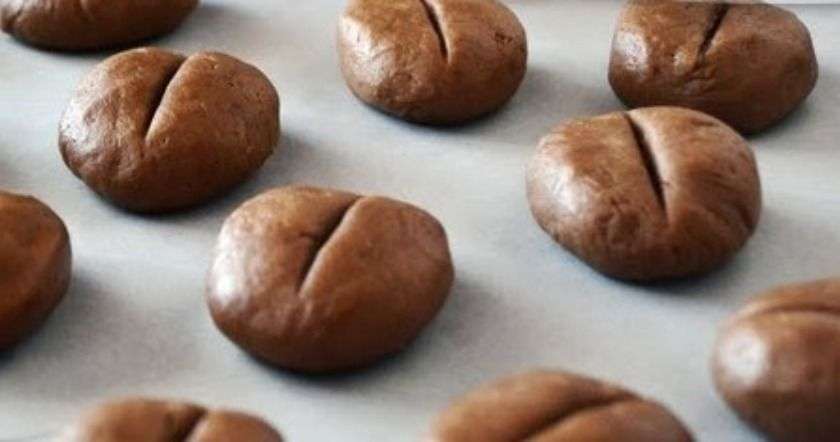Կլոր խմորների վրա ակոսներ անել դանակի բութ սայրով, որպեսզի սուրճի հատիկի տեսք ստանանք: