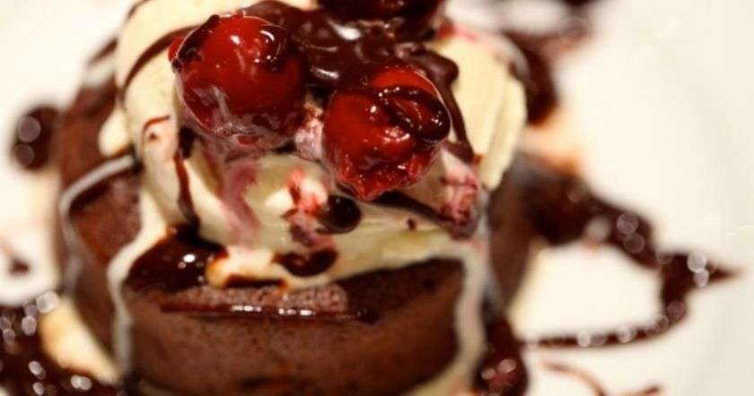 Մագքեյքը կիսում ենք, լցնում պաղպաղակ կամ յոգուրտ և զարդարում ելակով ու շոկոլադով: