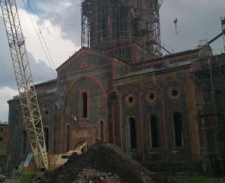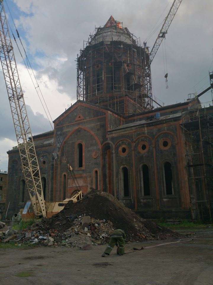 Գյումրու Սբ. Ամենափրկիչ կիսակառույց, կիսանորոգ եկեղեցու գմբեթն է վառվում, հենց հիմա:(