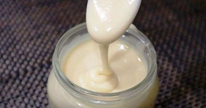 4. Թողեք՝ խտացրած կաթը մի քիչ սառչի և լցրեք մաքուր տարայի մեջ։ Այսքանից 300 գրամ խտացրած կաթ է ստացվում։ Պահեք սառնարանում։