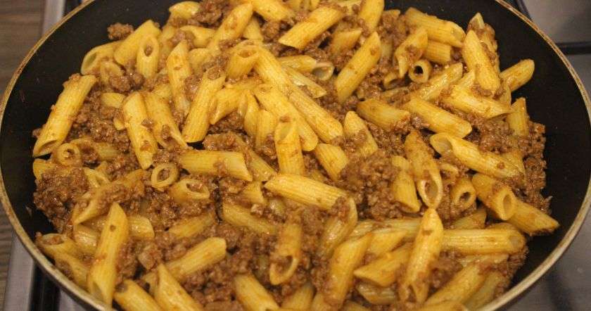 Հաջորդ քայլով հարկավոր է ջրի մեջ եփել մակարոնը, համեմել աղով։