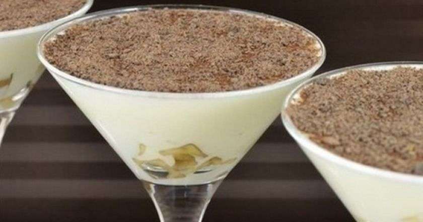 Բանանը մաքրում ու խորանարդաձև կտրատում ու լցնում ենք բաժակների մեջ։