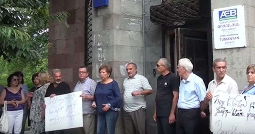 Այսօր Ալավերդիի մի խումբ մտավորականներ բողոքի ակցիա էին կազմակերպել «Հայէկոնոմբանկի» Ալավերդիի մասնաճյուղի առաջ: