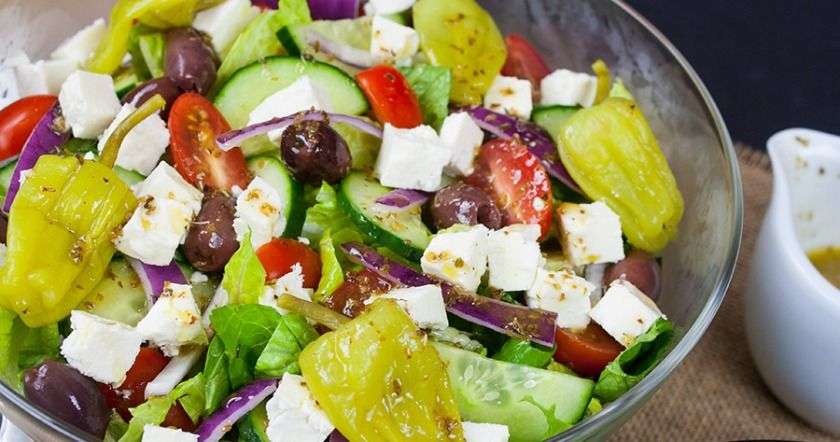 Վերջում խորանարդիկներով կտրատում ենք ֆետան և լցնում աղցանի վրա: