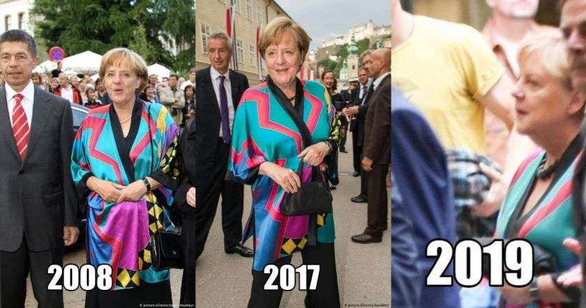 Գերմանիայի կանցլեր Անգելա Մերկելը հանրությանը ներկայացել է 23 տարվա վաղեմություն ունեցող զգեստով, գրում է Deutsche Welle-ը: