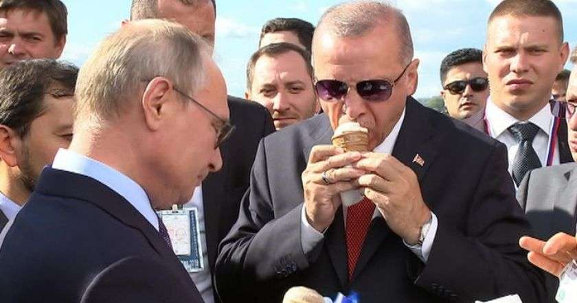 Ռուսաստանի Դաշնության նախագահ Վլադիմիր Պուտինը և Թուրքիայի նախագահ Ռեջեփ Թայիփ Էրդողանը Ժուկովսկի քաղաքում անցկացվող «МАКС-2019» ավիասրահում միասին պաղպաղակ են կերել, ընդ որում՝ երկուսի համար էլ վճարել է Ռուսաստանի առաջնորդը, հաղորդում է rbc.ru-ն: