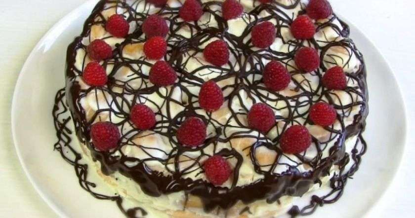 Զարդարում ենք շոկոլադով ու մեկ գիշեր թողնում սառնարանում, որպեսզի կրեմը լավ ներծծվի խմորի մեջ։