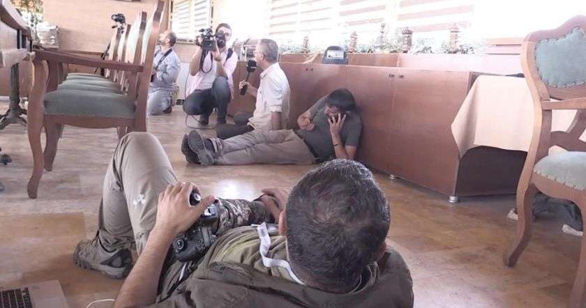 Թուրքական Նույսաբին սահմանային քաղաքում լրագրողներն ուղիղ եթեր են մտել թաքնված ու պատսպարված դիրքերով, որպեսզի ցույց տան քրդերի արկակոծության վտանգավորությունը...