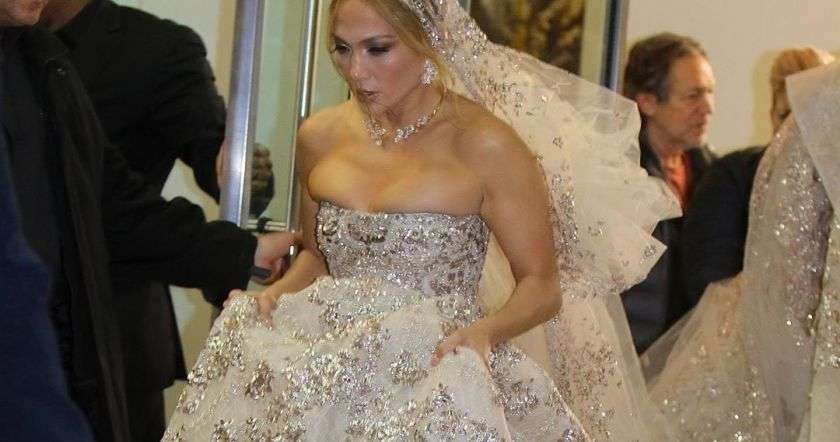 50-ամյա դերասանուհին հինգշաբթի երեկոյան՝ նոյեմբերի 17-ին, դուրս է եկել Նյու Յորքի հյուրանոցից: Նրա հագին հարսանեկան երկար զգեստ էր և բնական մորթուց թիկնոց։ Լոպեսի գլուխը նույնպես ծածկված էր ուլունքներով քողով։ Կերպարը լրացնում էին բազմաթիվ զարդերը` խոշոր մանյակ, մի քանի մատանի և ականջoղեր: