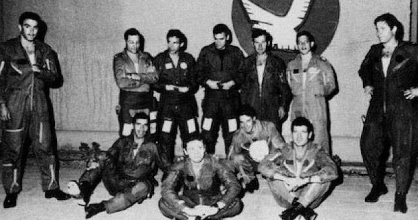 Նկարում պատկերված է իսրայելական օդաչուների այն խումբը, որը 1981թ. հունիս ամսին գրոհեց Իրաքի «Օսիրաք» կոչվող միջուկային ռեակտորը, որը գտնվում էր Բաղդադի մոտակայքում գտնվող ԱԼ-Թուվաթ միջակային կենտրոնում: 1970-ականներին Իրաքը սերտ հարաբերություններ ուներ թե՛ ԽՍՀՄ-ի և թե՛ արևմտյան երկրների հետ՝ ի դեմս Ֆրանսիայի: Վերջիններս Իրաքը մինչև ատամները զինել էին, սակայն Սադամ Հուսեյնին դա քիչ էր: Երբ նա 1975թ. այցելեց Մոսկվա, նրան ջերմ ընդունելություն ցույց տվեցին, սակայն Հուսեյնը չկարողացավ հասնել իր ռազմավարական նպատակին: Այնուհետև նա հայտնվեց Փարիզում, որտեղ 2 միլիարդ դոլարի դիմաց պայմանավորվեց, որ ֆրանսիացիների հետ համատեղ ջանքերով միջուկային ռեակտոր կկառուցվի Իրաքում: