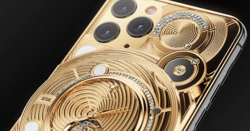 Caviar-ի հեղինակած iPhone 11 Pro մոդելը պատրաստված է կես կիլոգրամ ոսկուց, պատված է 137 ադամանդով և զարդարված շքեղ մեխանիկական ժամացույցով: