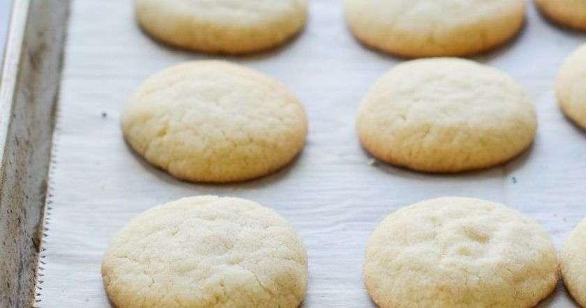 3. Պատրաստի խմորը բացել: Բաժակի միջոցով թխվածքաբլիթներ կտրել, թավալել շաքարավազի մեջ և շարել կաղապարի վրա: