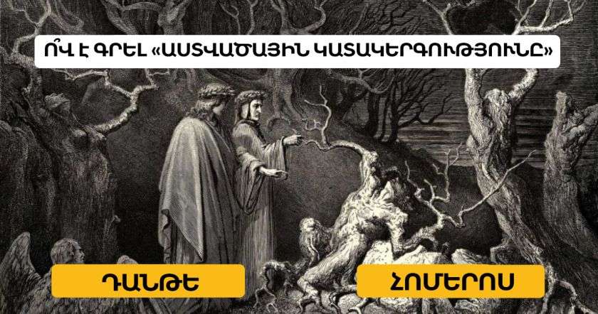 Ձեր ուշադրությանն ենք ներկայացնում տարատեսակ հարցերով նոր թեստ-վիկտորինա: Թեստը բավական հեշտ է և կարելի է անցնել երկու րոպեում: Բայց այստեղ կարևորը ոչ թե անցնելու ժամանակն է, այլ որակը՝ արդյունքը: Այնպես որ, պատասխանելուց առաջ մի լավ մտածեք: Ցույց տվեք մեզ, թե ով է ամենախելացին: