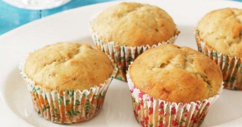 2. Կեքսի կաղապարները յուղապատել: Յուրաքանչյուրի մեջ լցնել հատապտուղներ և ավելացնել բանանային զանգվածը: Թխել կեքսերը 12 րոպե: