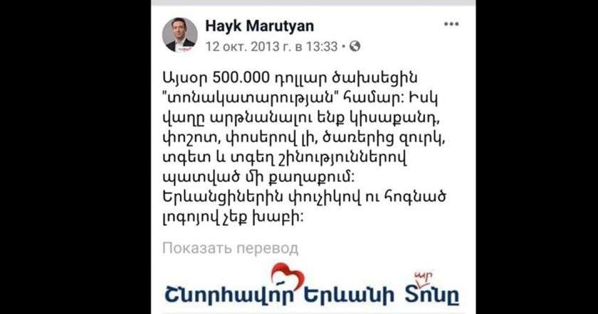 Ընդդիմադիրները պոպուլիզմով են զբաղված: Տոնի համար 500.000 դոլարը քիչ է... 700-ը՝ էլի ոչինչ...