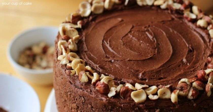 5. Խմորը բաժանել երկու մասի, պատել կրեմով և զարդարել ընկույզով: